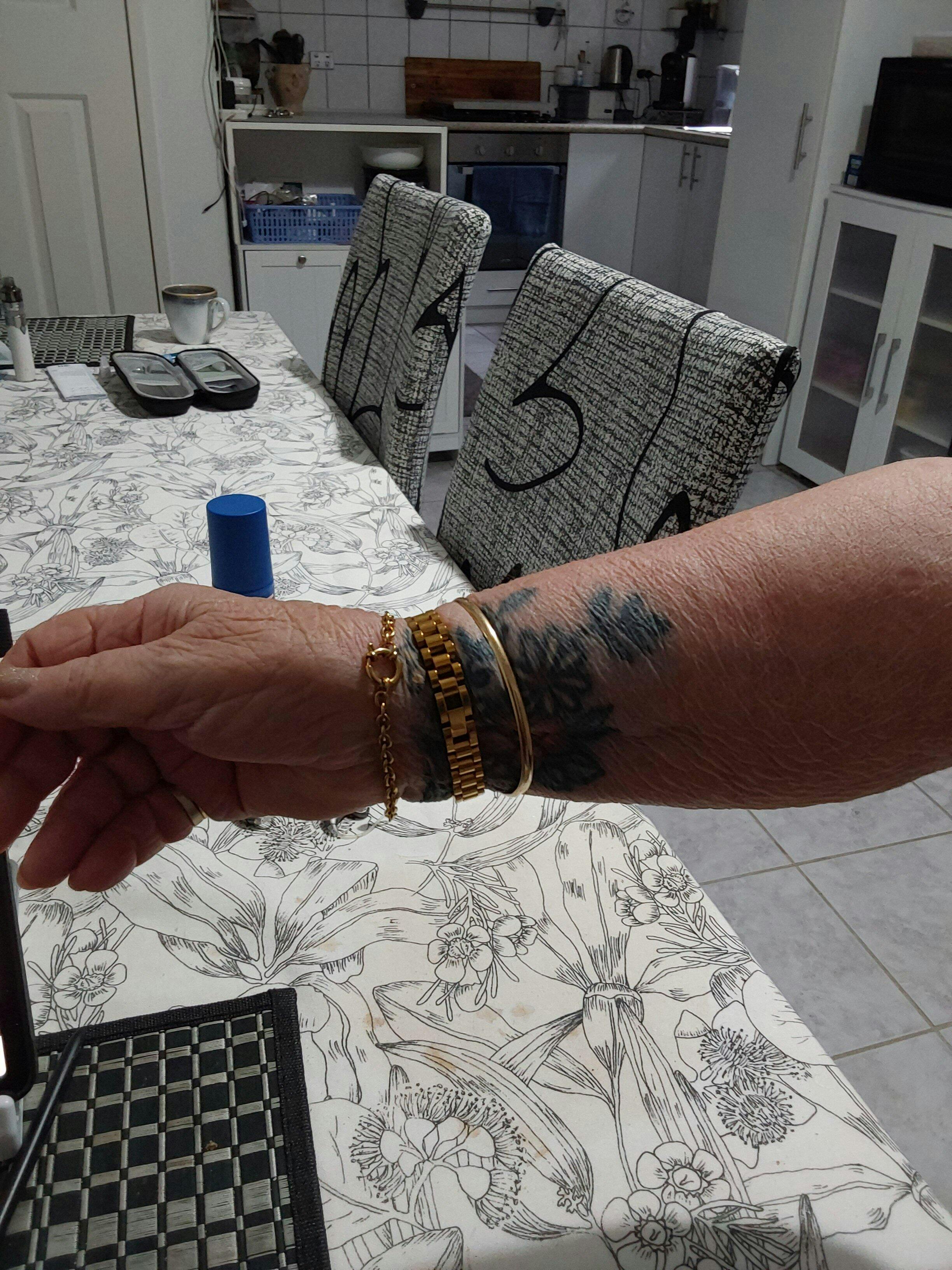 I'm liking my bracelet still good from the day I put it on firm fit one more link would have been great but still looks good from the day go working to get something else I got my eye on earings I seen once you got them on I leave on thanks