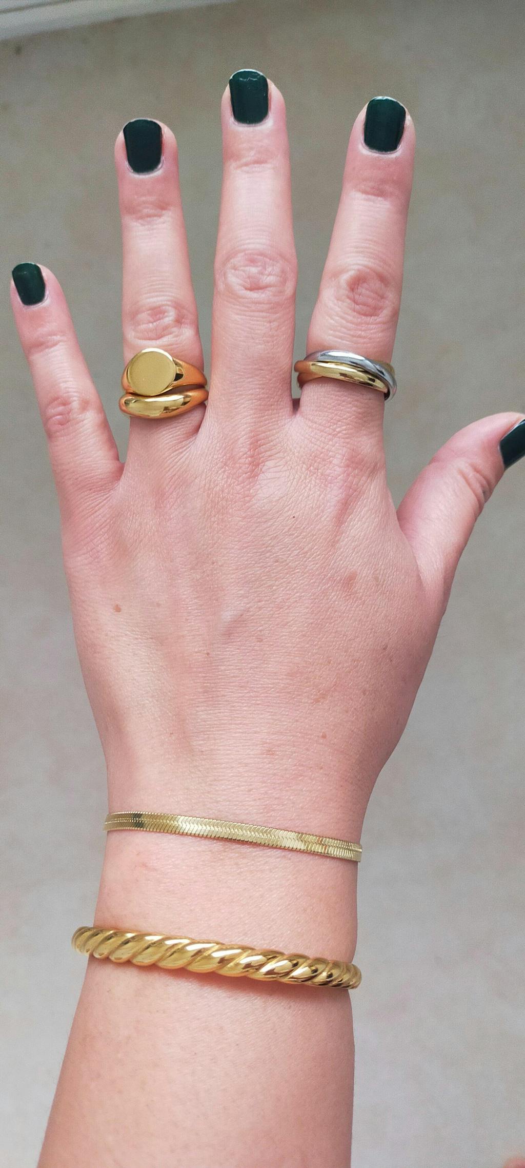 A classic twist with a modern edge. This two-tone ring blends gold and silver in a seamless, interlocking design. Simple, symbolic, and effortlessly stylish - no stacking required.