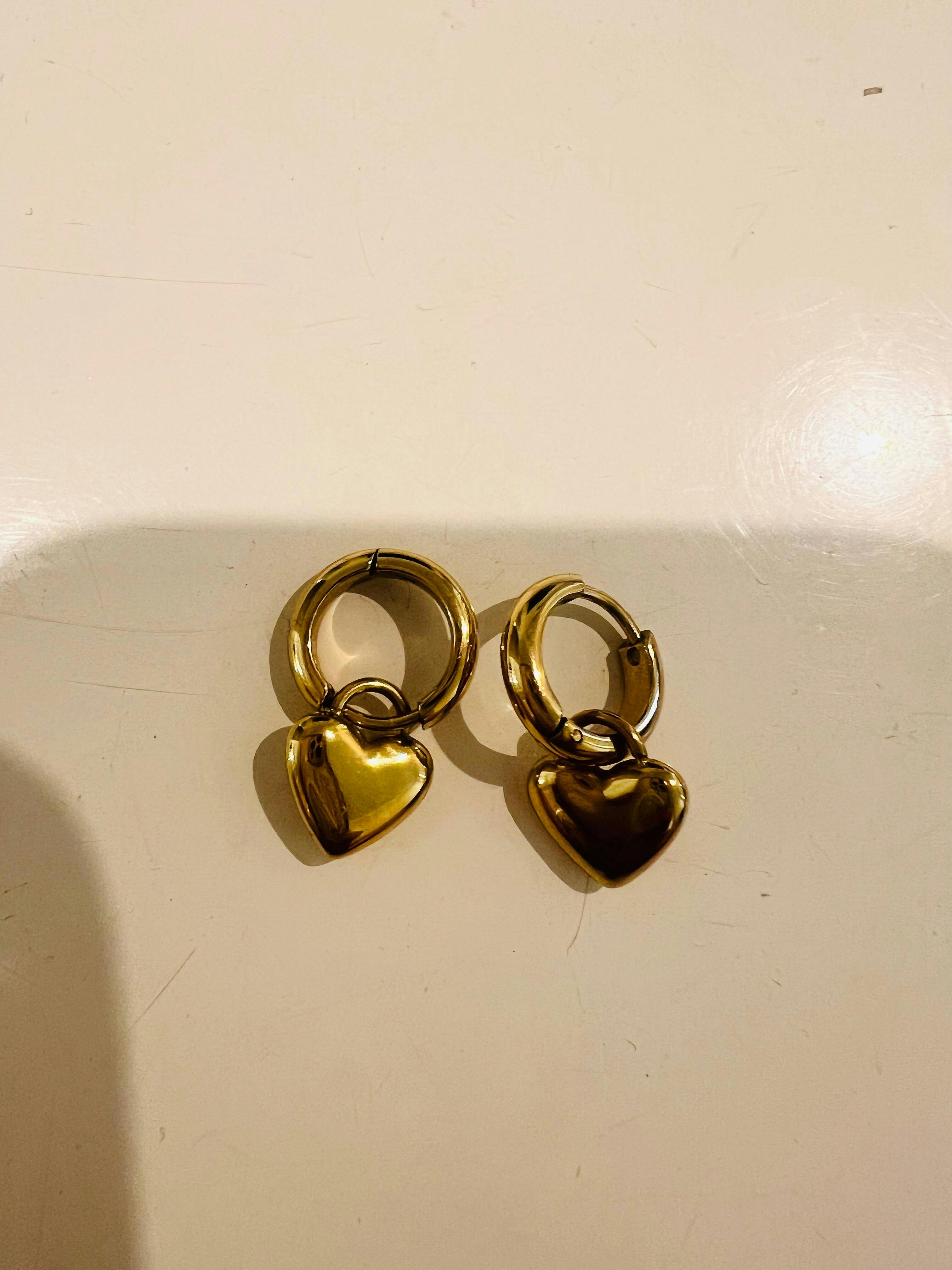 Gold huggies with a rounded heart charm. Simple, polished, and easy to wear.