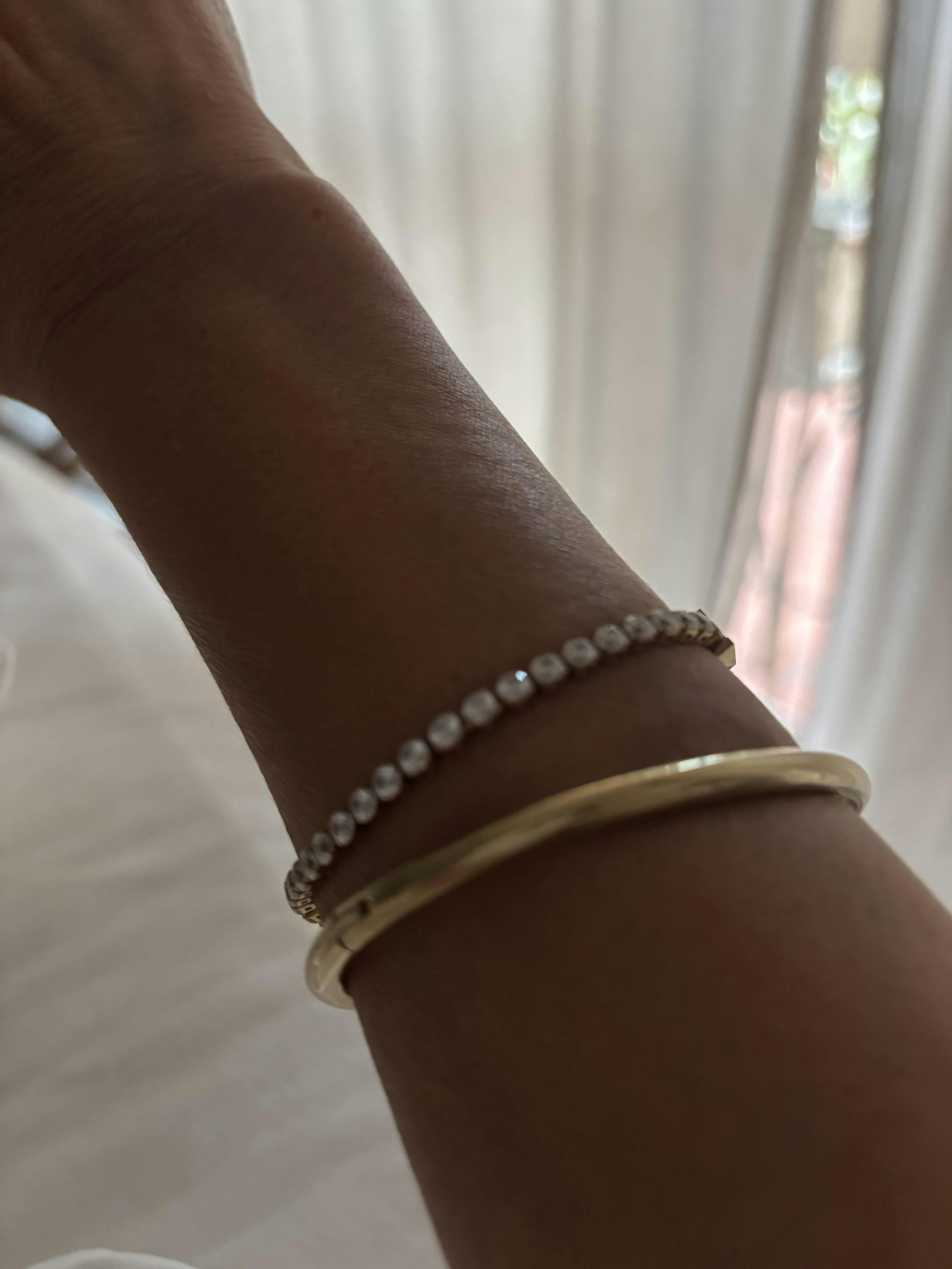 Introducing our exquisite tennis bracelet with dazzling CZ stones, a showstopper that adds a touch of glamour and elegance to your wrist. Crafted with precision, this bracelet features a classic design that has been loved and admired for generations.