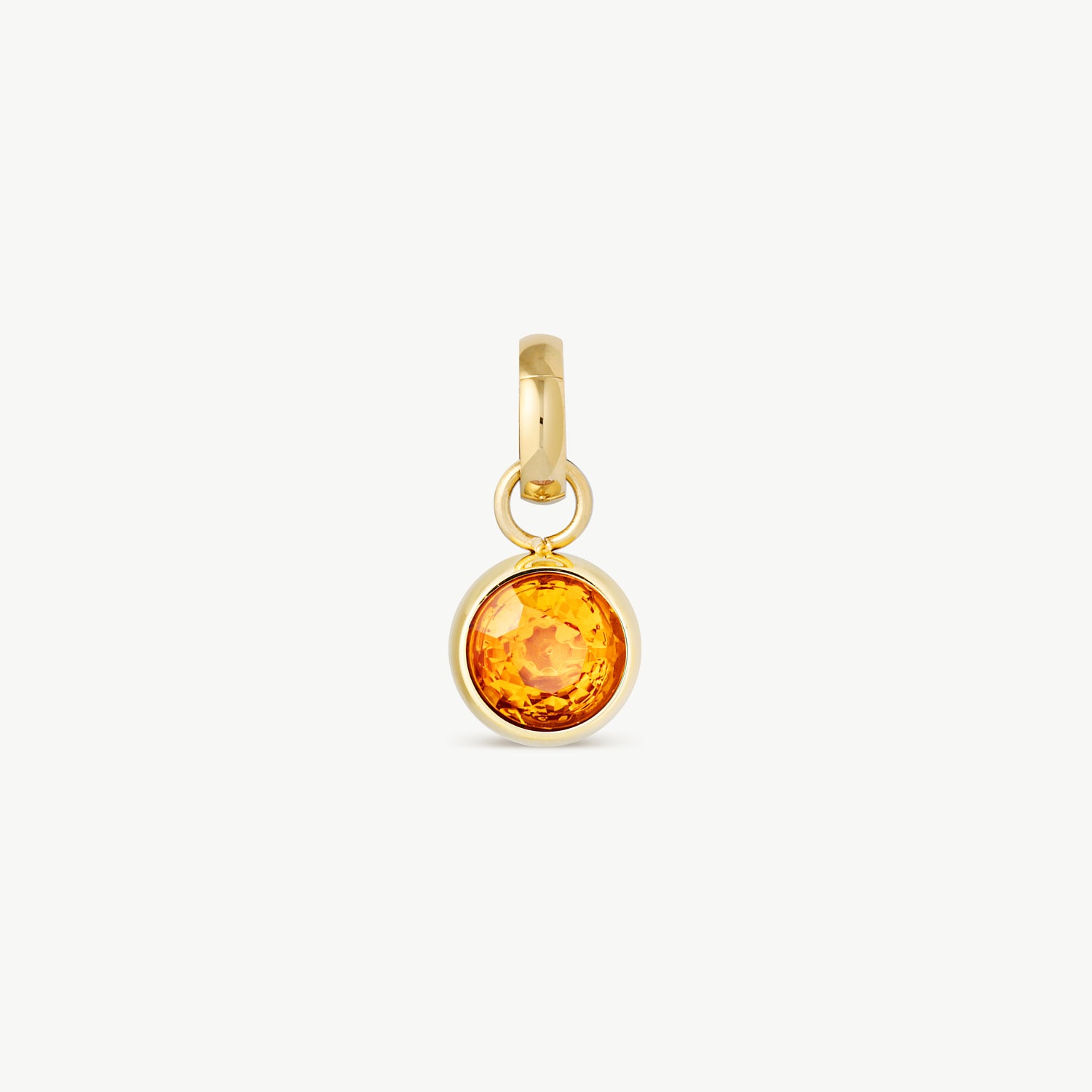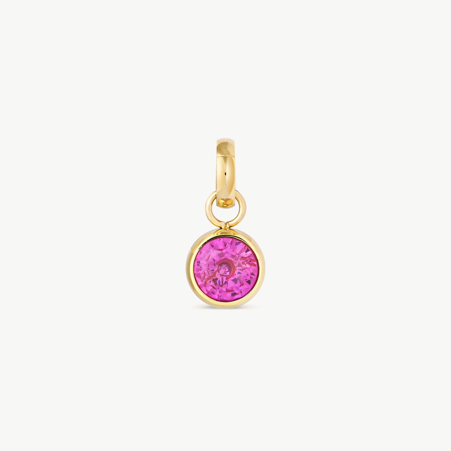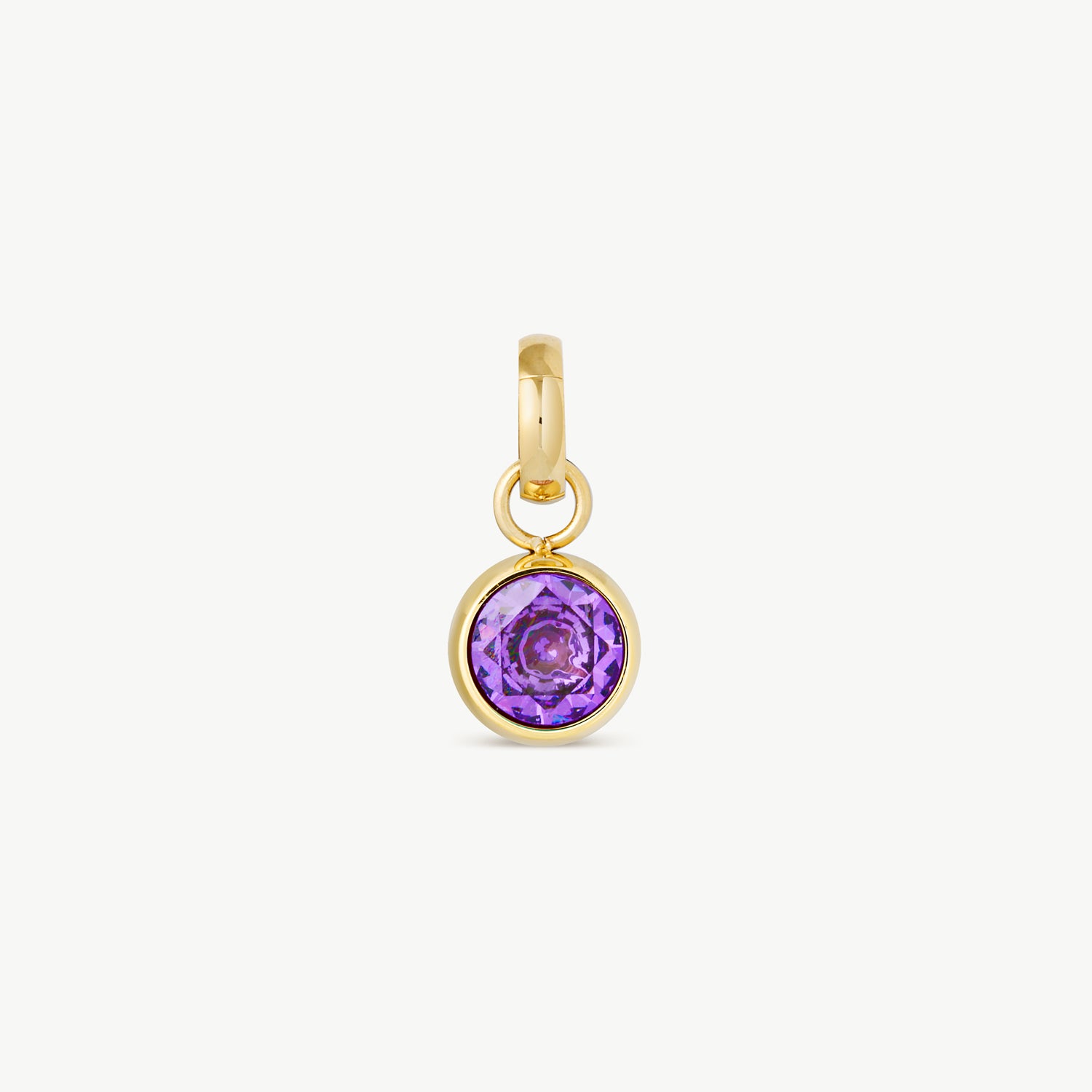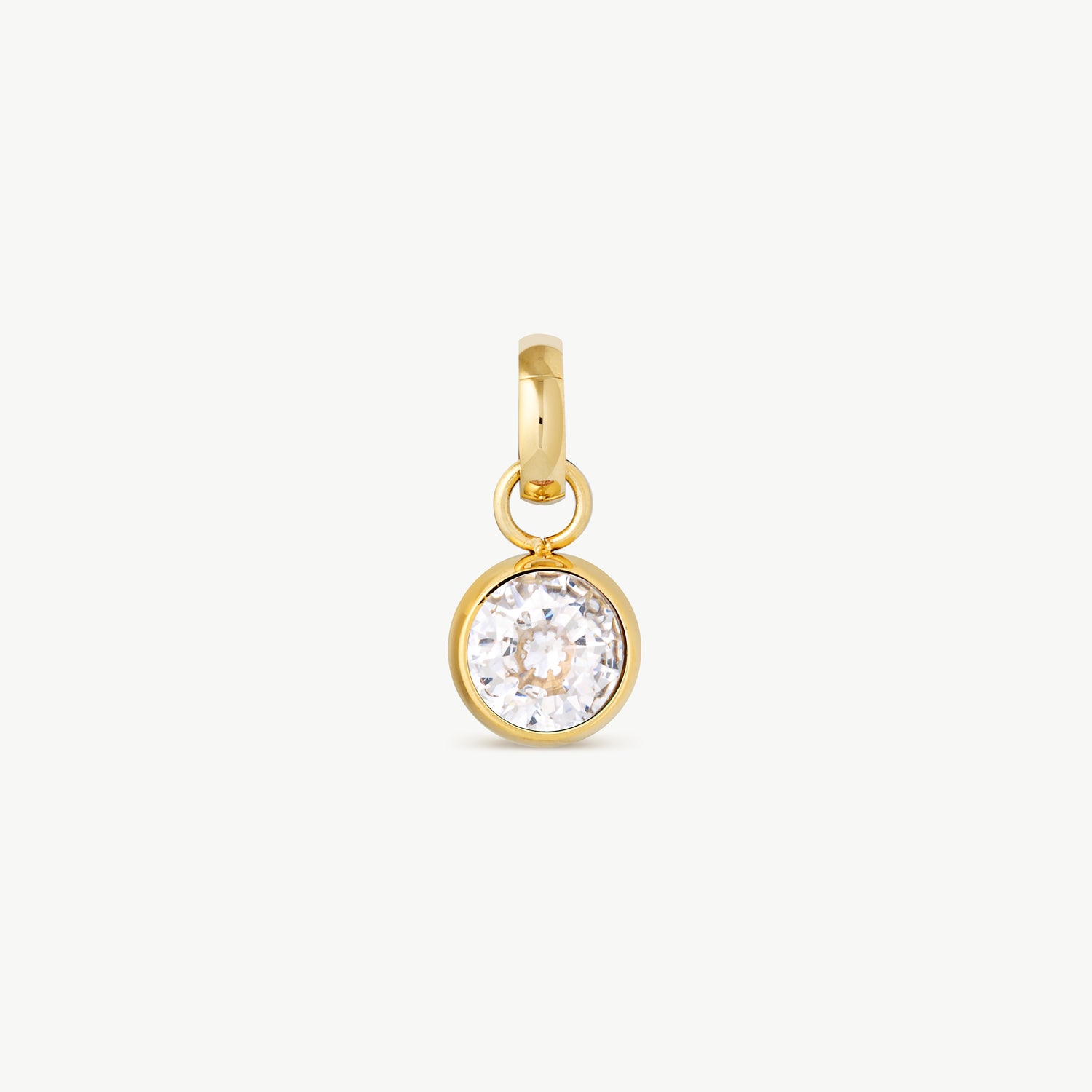 A round birthstone charm featuring a faceted crystal set in a smooth gold bezel. Designed with a clip-on ring so you can easily attach, remove, and mix it with your favourite chains or bracelets.