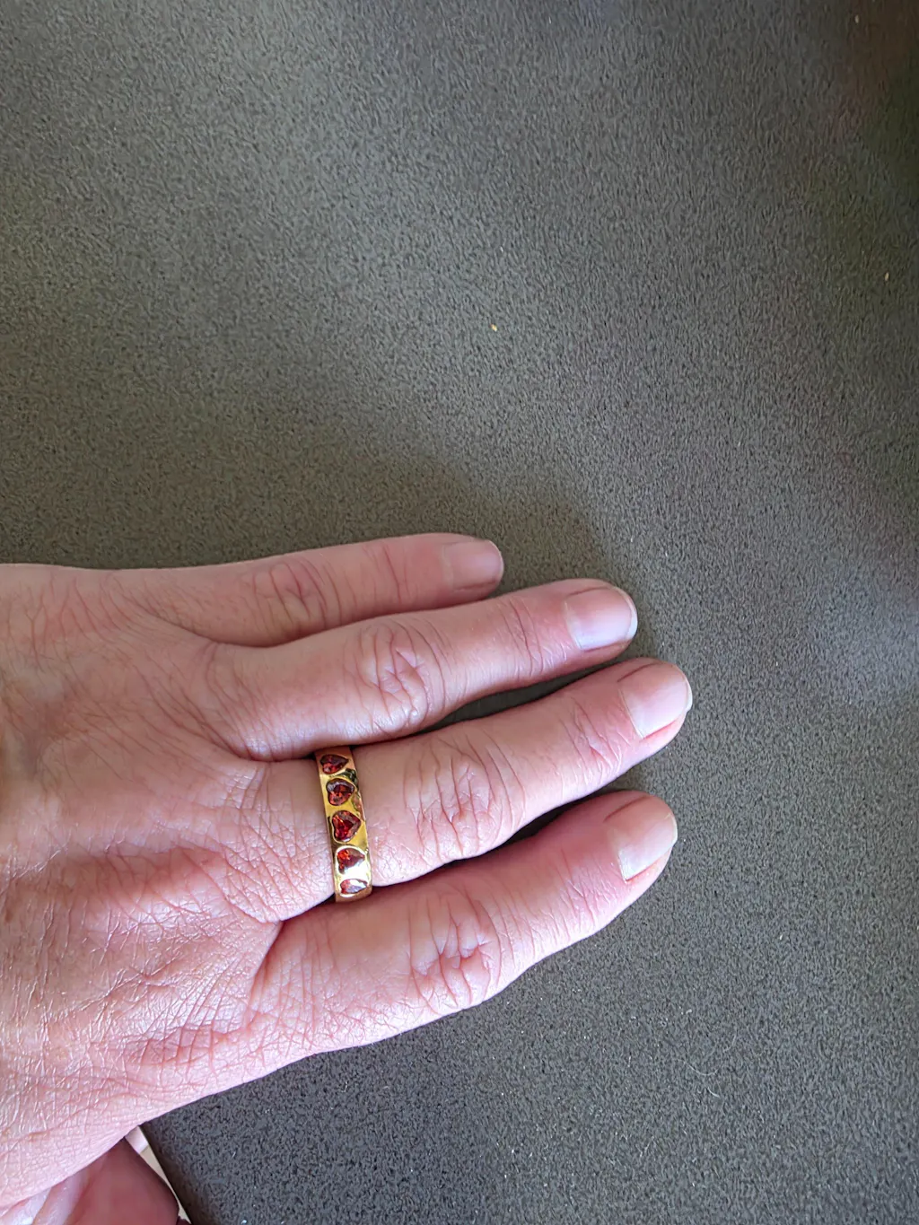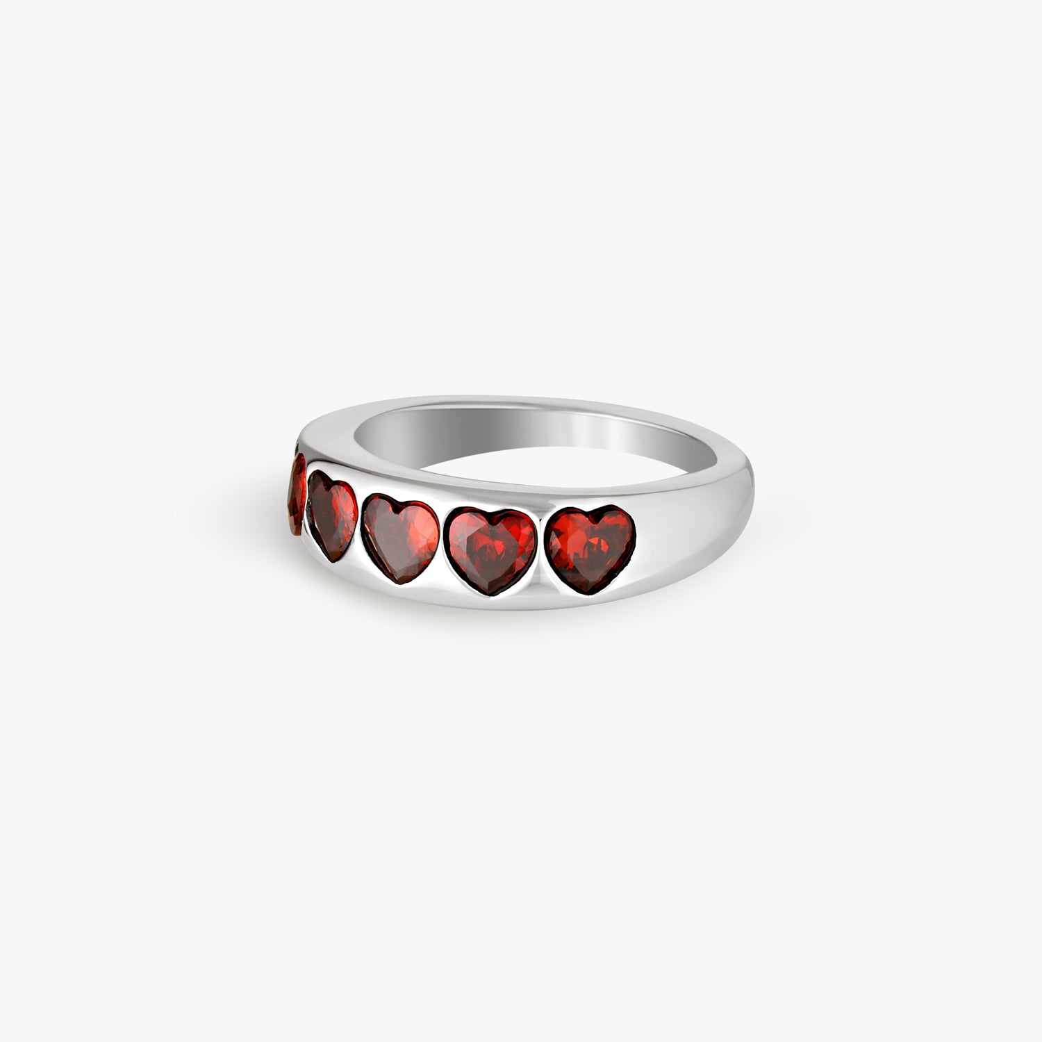 Sweet, bold, and a little bit fiery. This gold band features deep red heart-cut stones for a playful yet polished look. Whether you’re stacking it or letting it shine solo, it brings the romance without being too cute. Think of it as your everyday love note - with a little edge.
