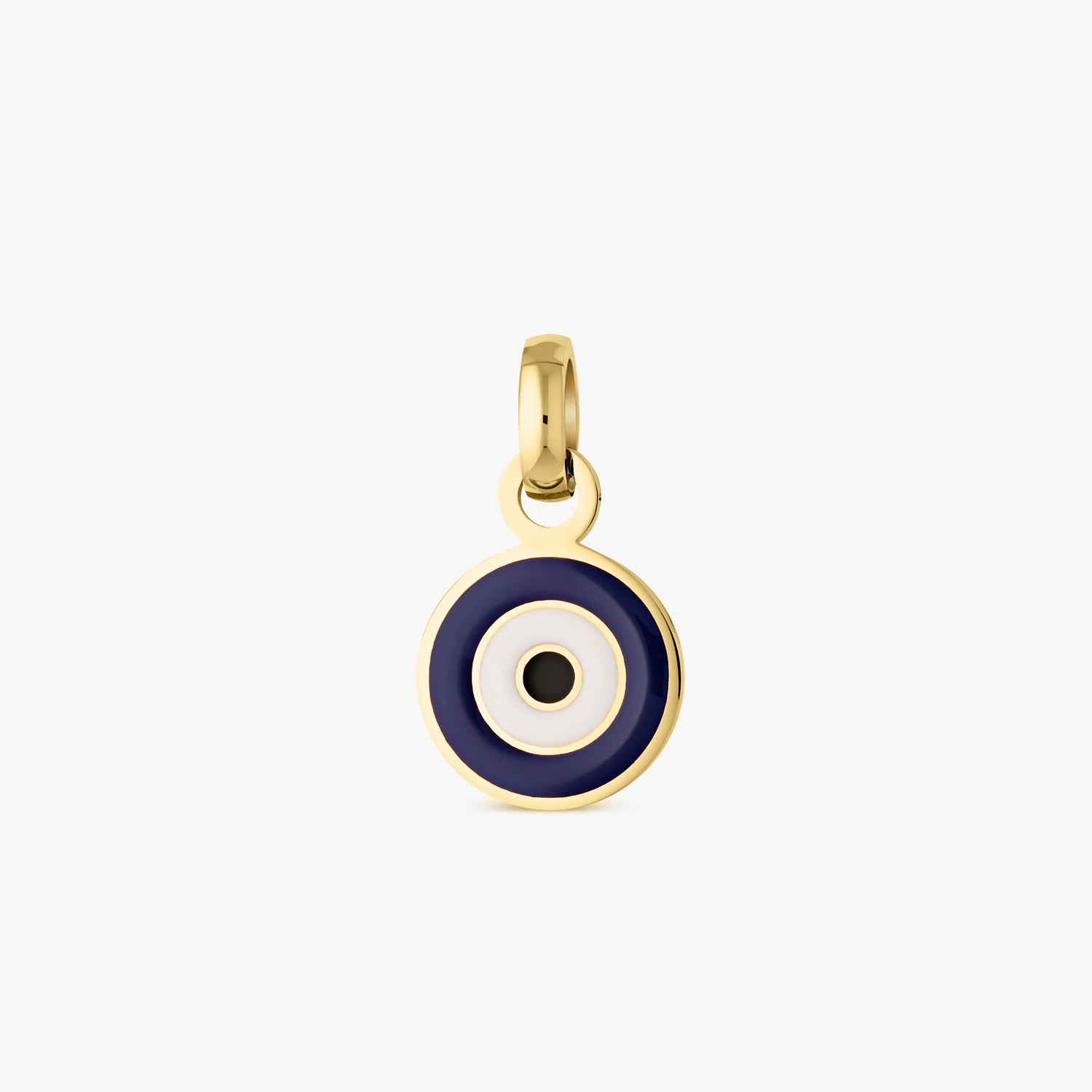 A round enamel charm with a bold evil eye design. Finished with a clip-on ring so it’s easy to attach, remove, and restyle across your chains or bracelets.