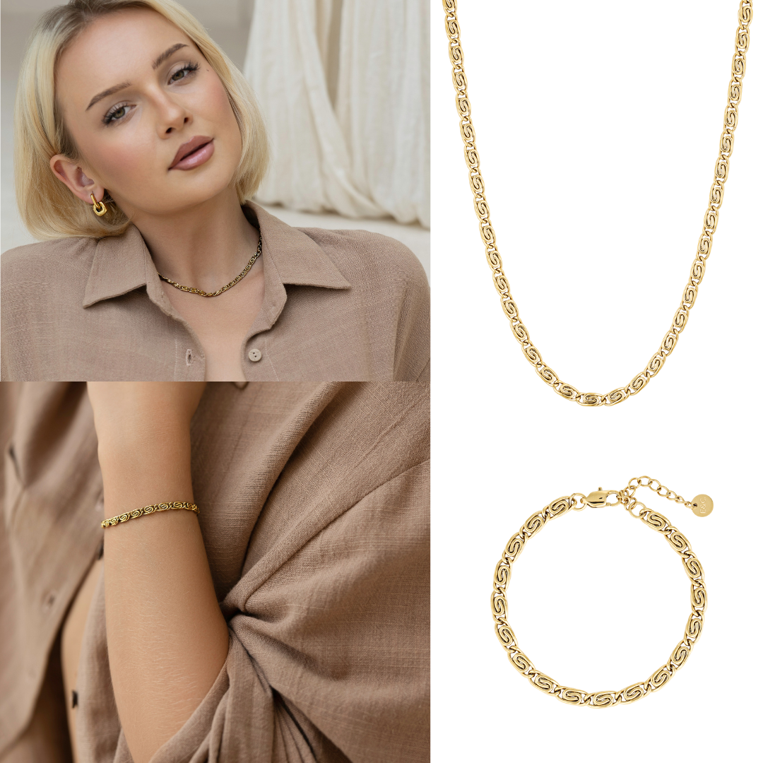 Your new everyday power set. This matching chain and bracelet combo adds the perfect touch of gold - bold enough to stand out, yet still easy for daily wear. Throw it on with anything and you’re good to go.
