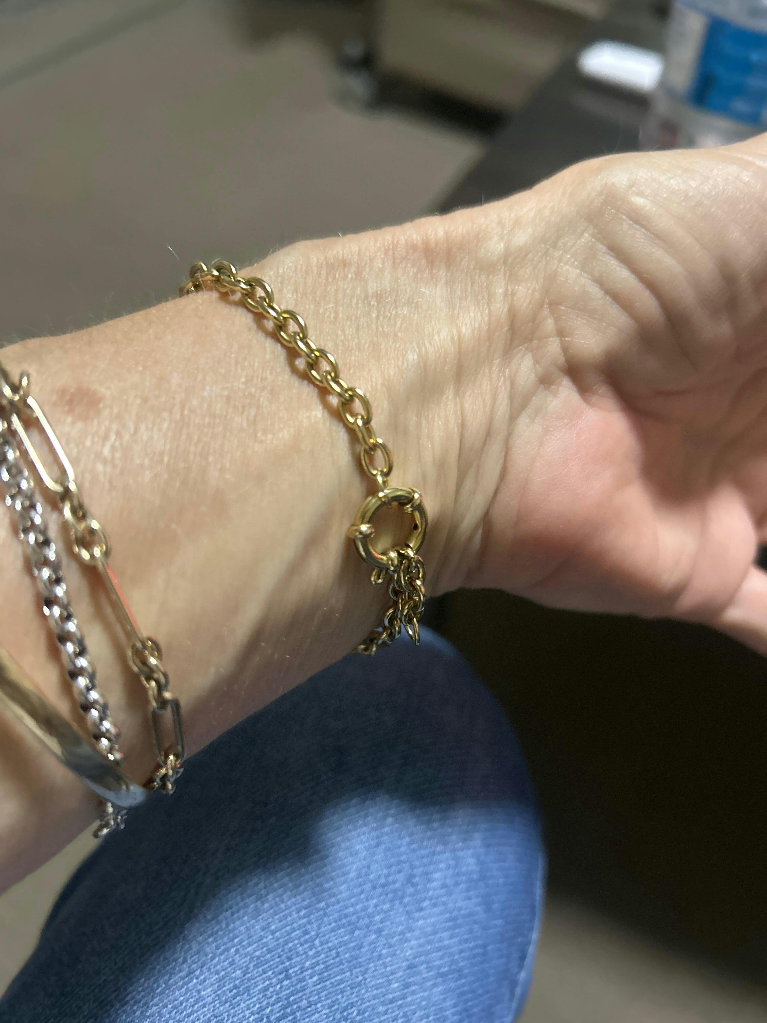 Bold but easy, this chain-link bracelet is made to go with everything - especially the Mackenzie Necklace. Finished with a statement clasp, it’s the perfect mix of classic and modern. Wear it solo or stack it - either way, it makes an impact.