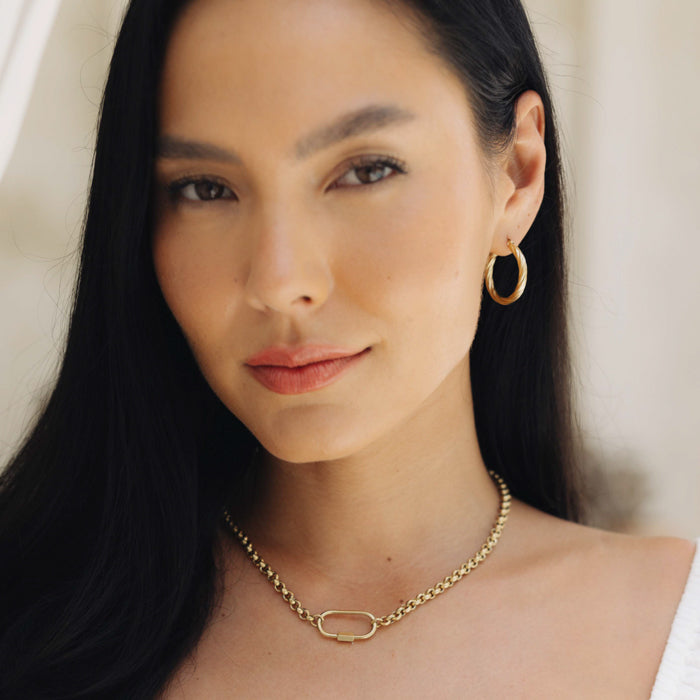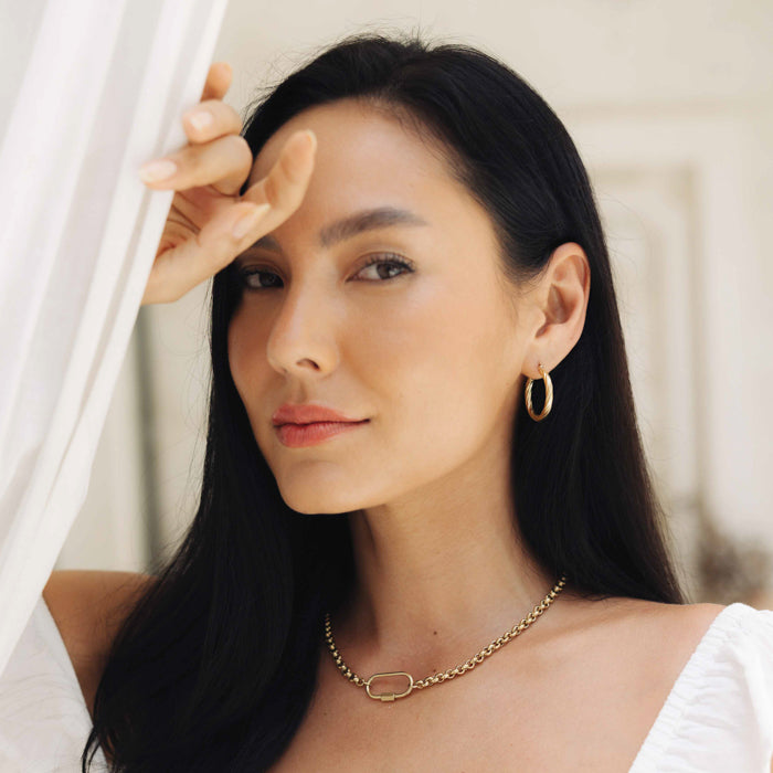 Your new everyday staple - simple, bold, and effortlessly chic. The Malia Belcher Necklace features rounded links and a sleek clasp that catches the light just right. It’s waterproof, hypoallergenic, and made for everyday wear - from beach days to dinner nights.