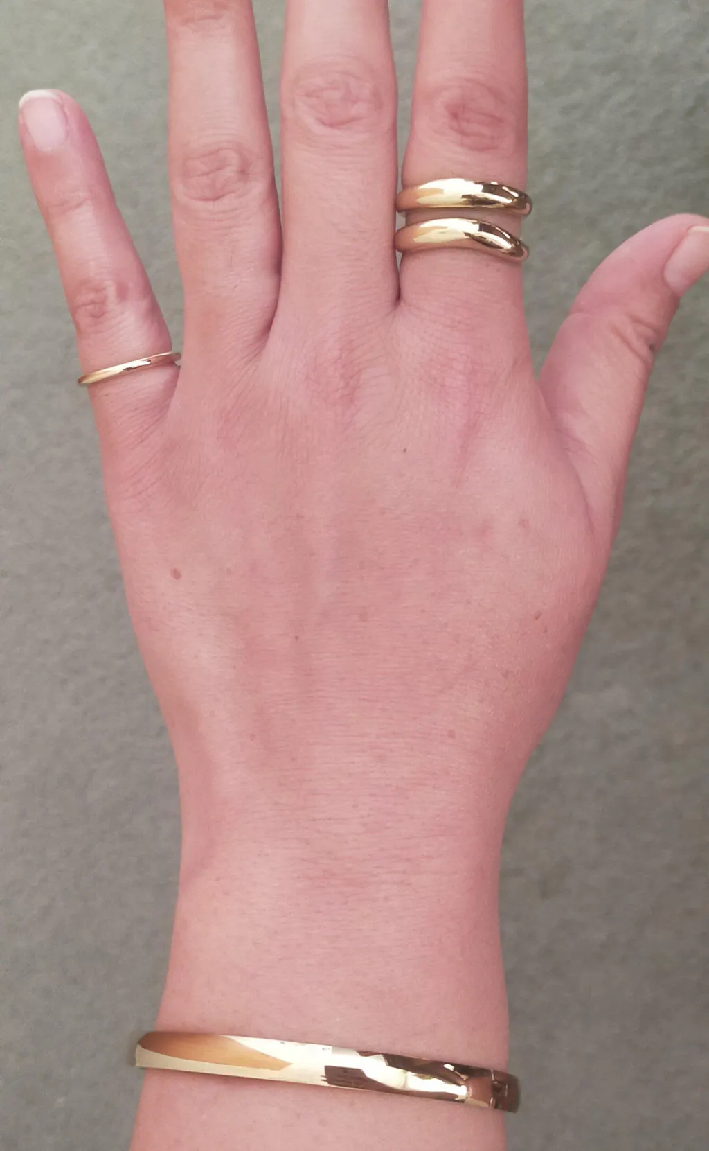 Sleek, polished, and made to stand out. This gold-tone bangle is a classic statement piece - bold enough to wear on its own, timeless enough to style every day.