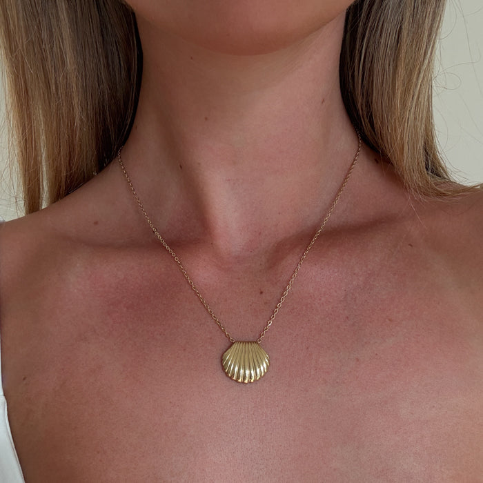 Channel your inner beach babe. This gold shell necklace is simple, sculptural, and just the right amount of statement. Wear it solo or layer it up - it’s made to shine every day.